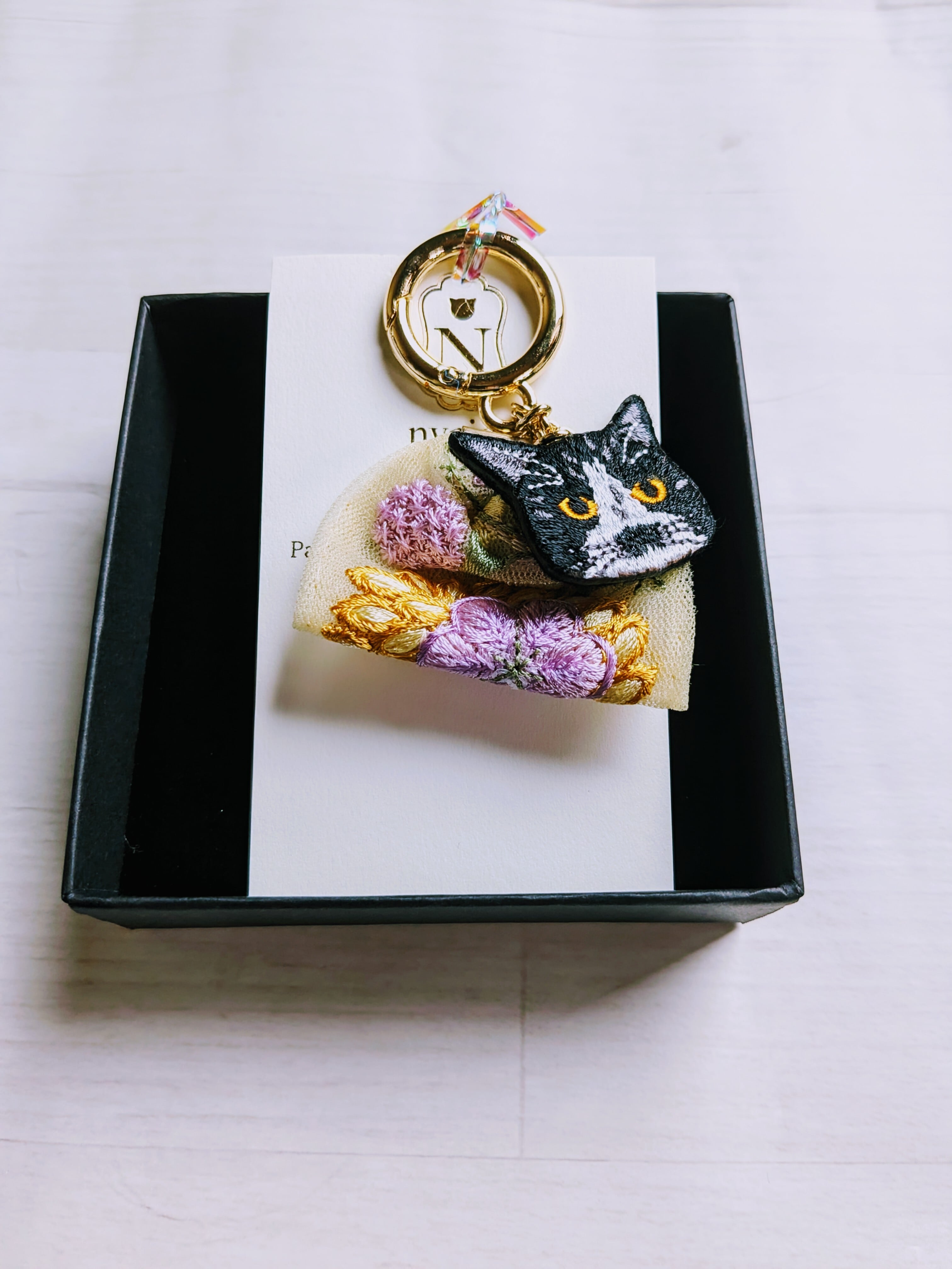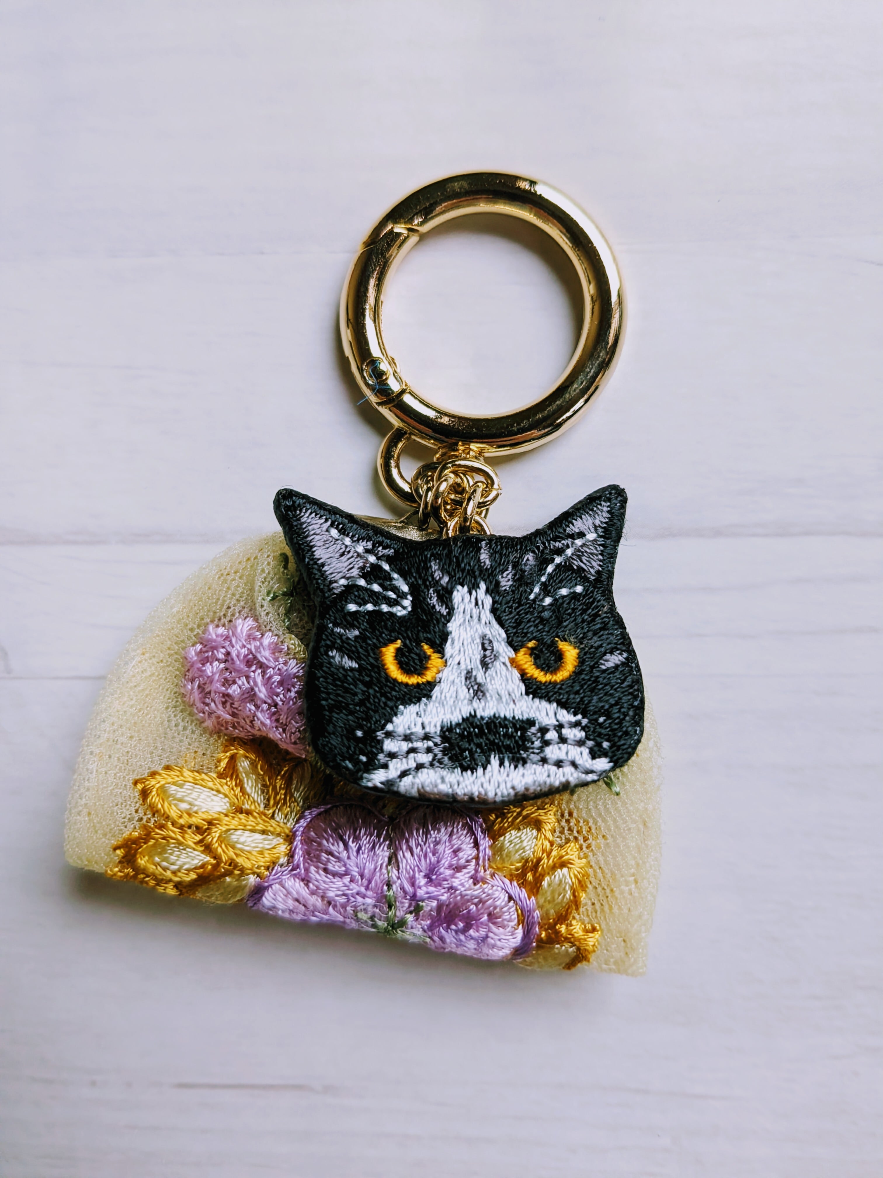 刺繍から仕上げまで、すべて手作業で丁寧に作られた一点モノのチャーム。