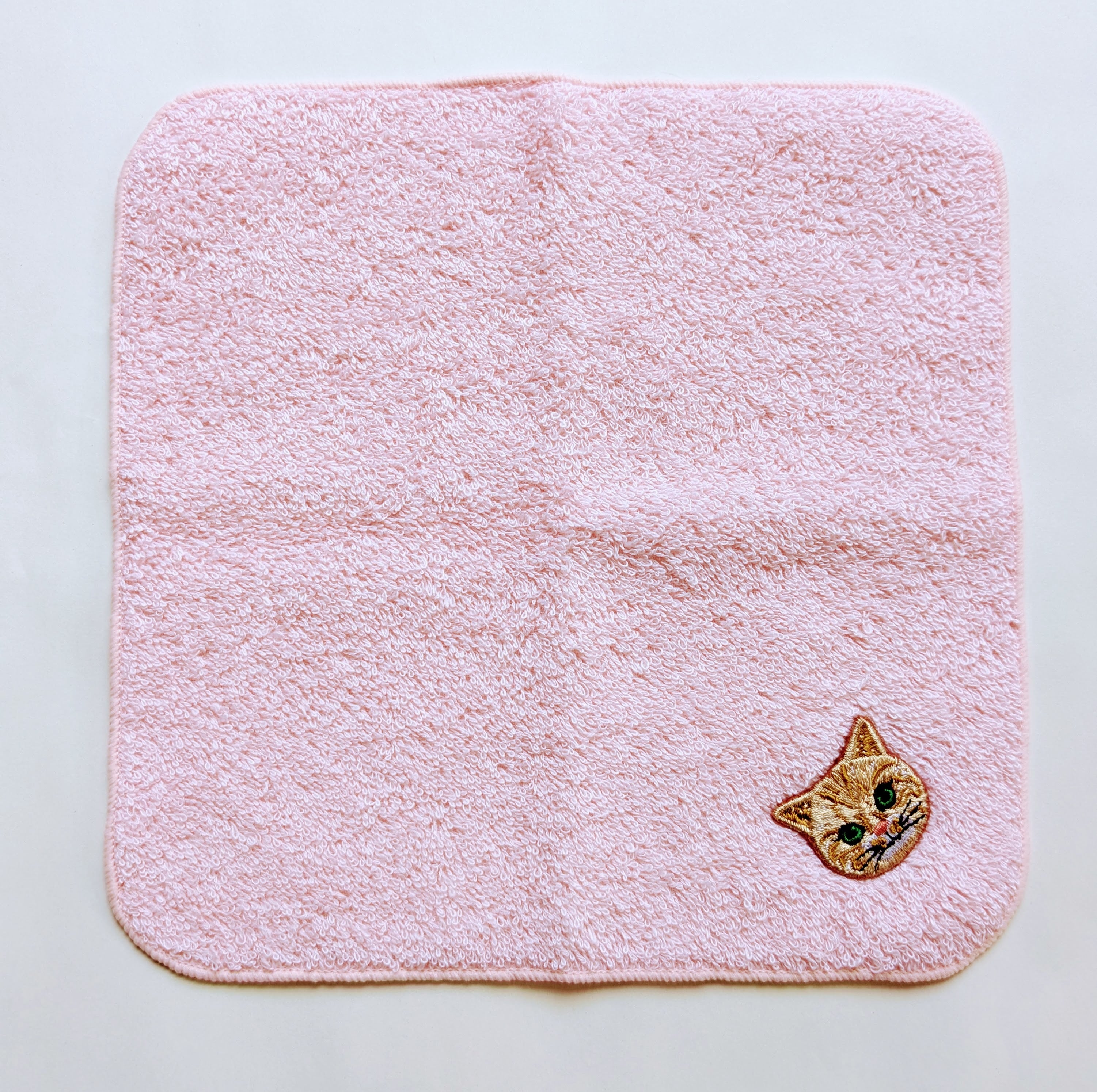 日本製老舗タオルメーカーの泉州タオルに当店オリジナル猫さん刺繍をお付けした作品です。