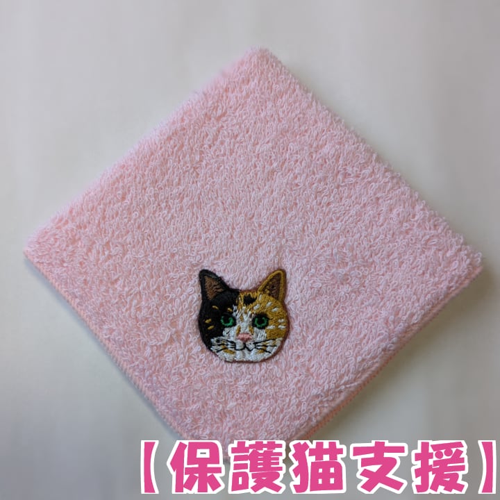 日本製老舗タオルメーカーの泉州タオルに当店オリジナル猫さん刺繍をお付けした作品です。